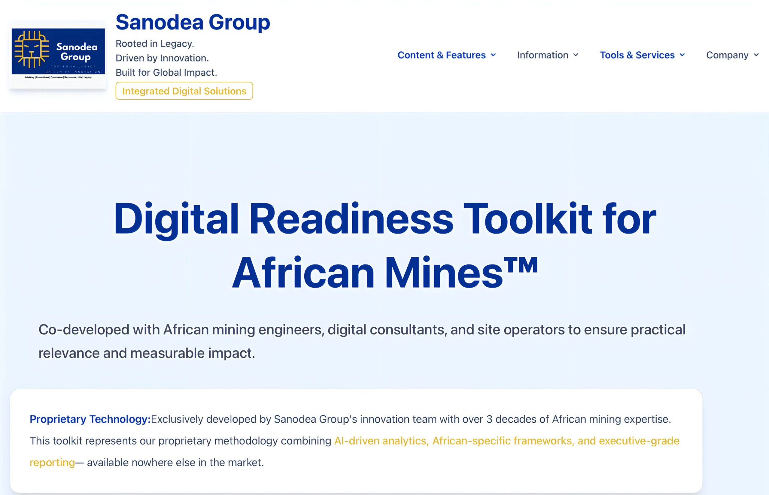 The Digital Readiness Toolkit for African Mines™ is a proprietary digital transformation framework developed by Sanodea Group, under the leadership of Mr. Jean Y. Marais. It is designed to accelerate digital adoption in Africa’s mining sector by providing executives and decision-makers with a structured pathway to operational excellence, regulatory compliance, and sustainable growth in an increasingly competitive and technologically advanced industry.